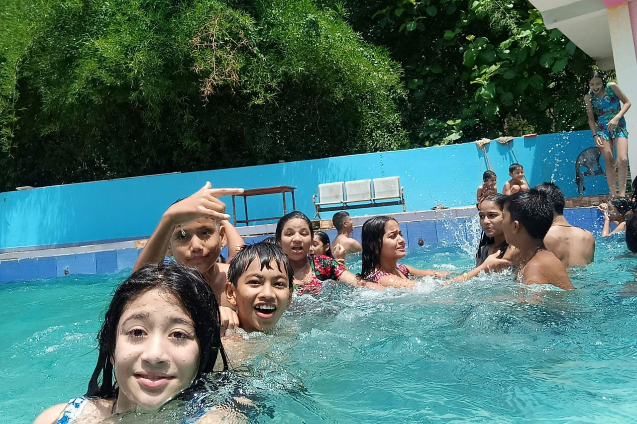 Hostel students in summer swimming , 2080